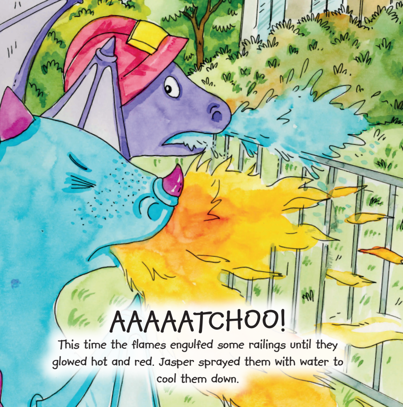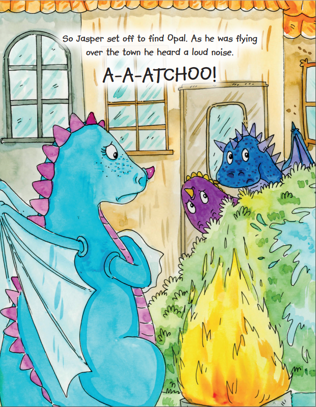 In the second book in the Jasper dragon series, Jasper has to protect Huffenpuffen Valley from a fire SNEEZING dragon. This book is particularly good for early readers who are learning phonics, and is filled with lots and lots of sneezes. Atchoo!