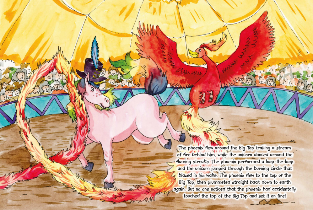 In the third book in the Jasper Dragon series, the Magical Circus visits Huffenpuffen Valley. When disaster strikes during a circus act, Jasper bravely saves the day. This book continues to celebrate individuality and introduces young readers to mythical creatures including a rainbow unicorn and a phoenix.