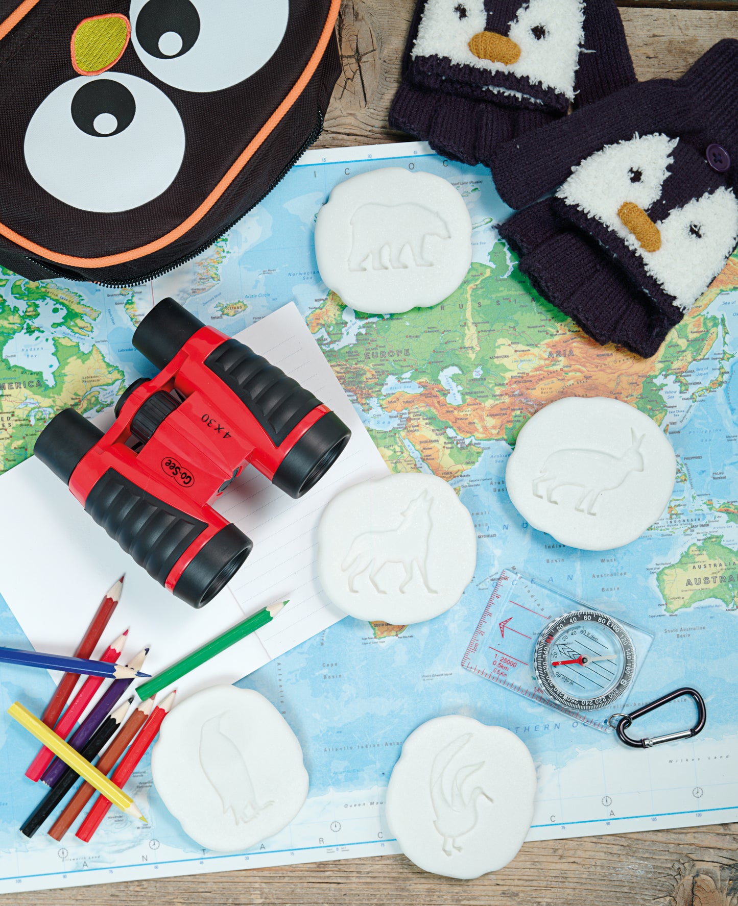 These chilly footprints will encourage interest in the fascinating wildlife that inhabits our frozen polar landscapes. Including animals from the Arctic and Antarctica, these stones are perfect for fostering an understanding of our fragile natural world and promoting a commitment to protecting it. Each stone features a raised footprint on one side and its owner on the other. Contains eight double-sided footprint stones: polar bear, reindeer, wolf, musk ox, arctic fox, arctic hare, albatross and penguin. Age 3+.